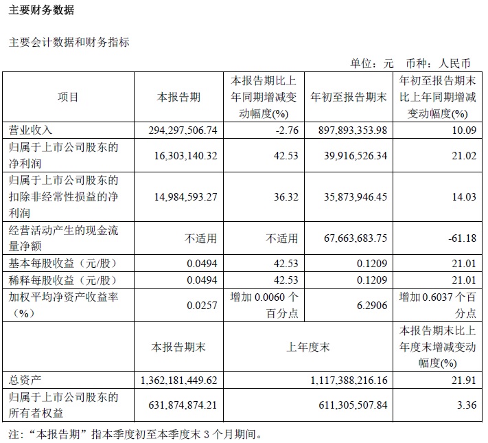 寶光股份2022年三季度主要會計數據和財務指標